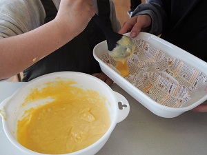 カップに入れる、焼く